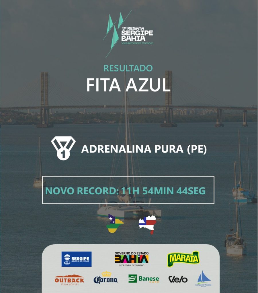 A 3ª Regata Sergipe Bahia bateu record de inscritos em relação às edições anteriores, com 34 veleiros de 08 estados, e mais de 160 velejadores e velejadoras embarcados, navegando pelo trecho de litoral entre Aracaju e Salvador. O novo Fita Azul e recordista de tempo da RESEBA é agora o veleiro Adrenalina Pura, de Pernambuco.